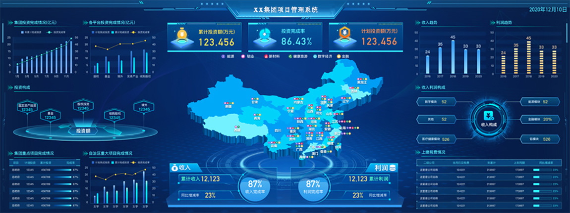 专门定制开发,,能轻松制作出酷炫的管理驾驶舱,,,,支持发布到多场景的数据大屏上进行可视化集中管控,,为广大客户提供多种层次,,,多种体系的数据分析和可视化解决方案